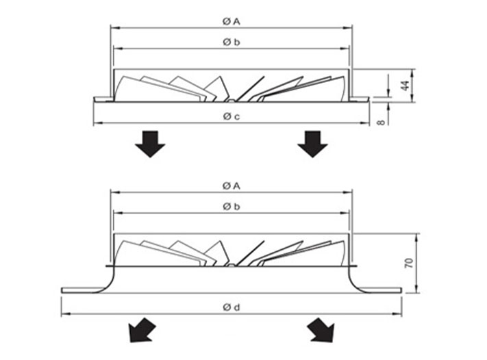 It is used as blowing diffusers in Hvac systems. It is suitable for vertical use. The ideal shooting distance is between 3.5 m -7 m. It is used for heating and cooling in sports halls, shopping malls, factory buildings and conference halls where high flow and long throw distances are required. Standard screw mounting. The way of mounting can be changed optionally.