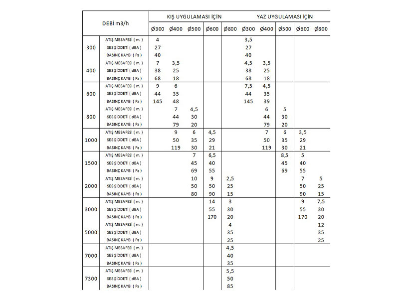 Hvac sistemlerinde üfleme difüzörleri olarak kullanılmaktadır. Düşey kullanım için uygundur.Isıtma ve soğutmada kullanılabilir. İdeal atış mesafesi 3m-15m.arasındadır.Tavan uygulamalarında kullanılır. Servo motor kullanımına uygundur. Standart vidasız montajlıdır. Montaj şekli isteğe bağlı olarak değiştirilebilir.
